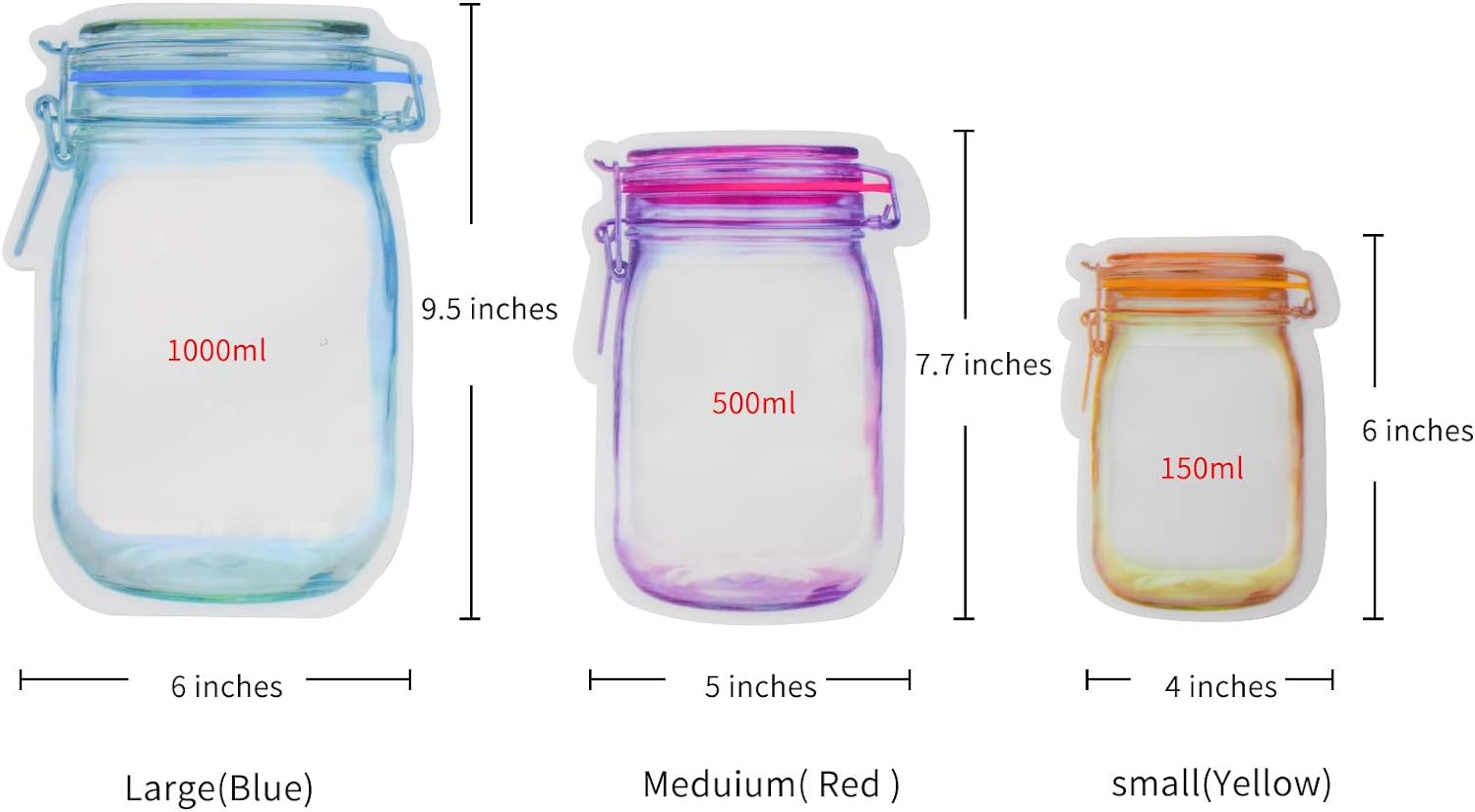 Weighing only 0.23 kg, these bags are light yet strong, making them the ideal choice for camping, road trips, and picnics. Their mason-jar design not only looks adorable but also saves space in drawers and bags.