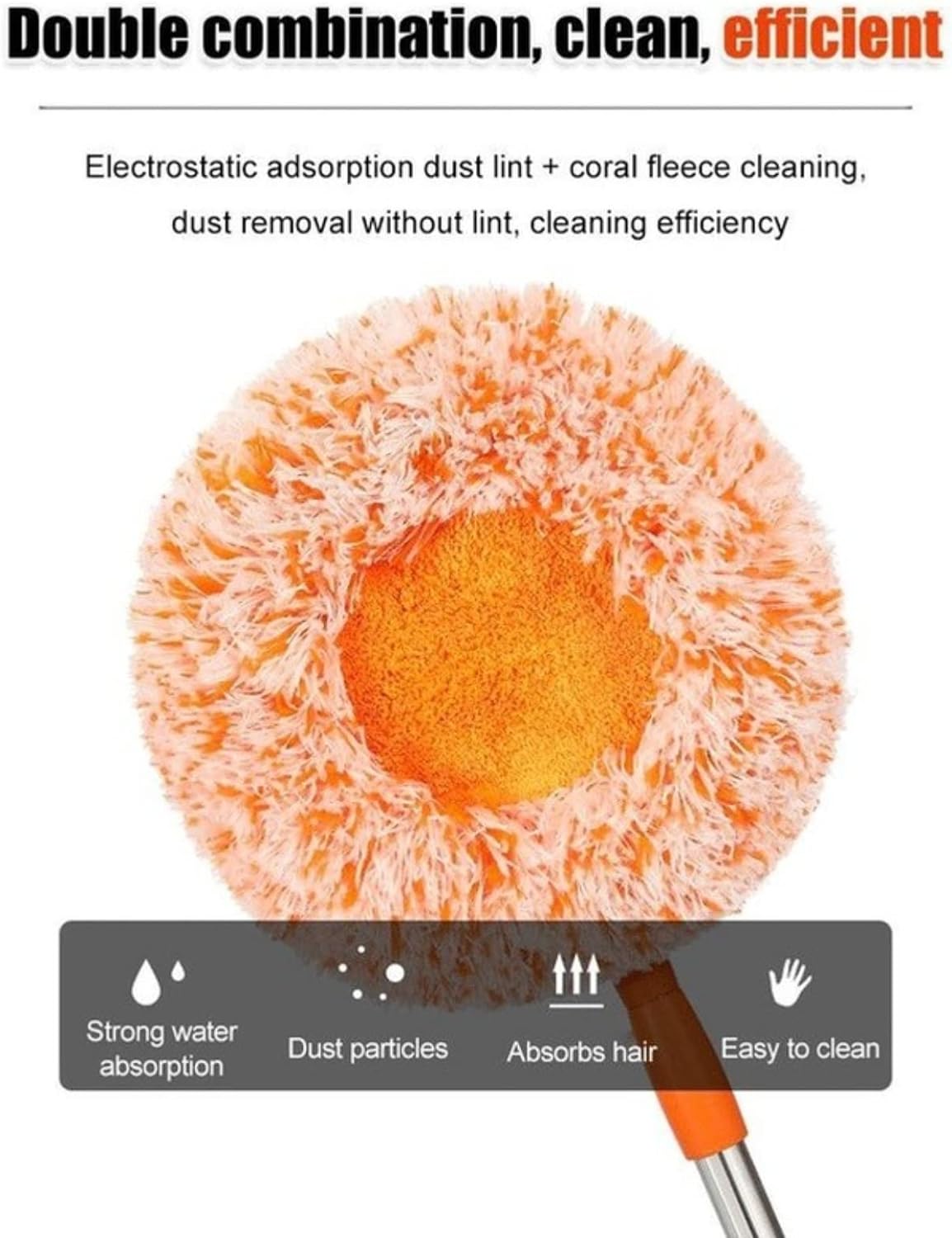 Equipped with four sunflower mop covers, this cleaning mop is ready for any task. The inner disc features absorbent coral fleece for wet cleaning, while the surrounding microfiber chenille petals excel at dry dusting and hair removal. The ultra-fine fibers penetrate crevices and corners, picking up even the smallest particles for a sparkling clean.