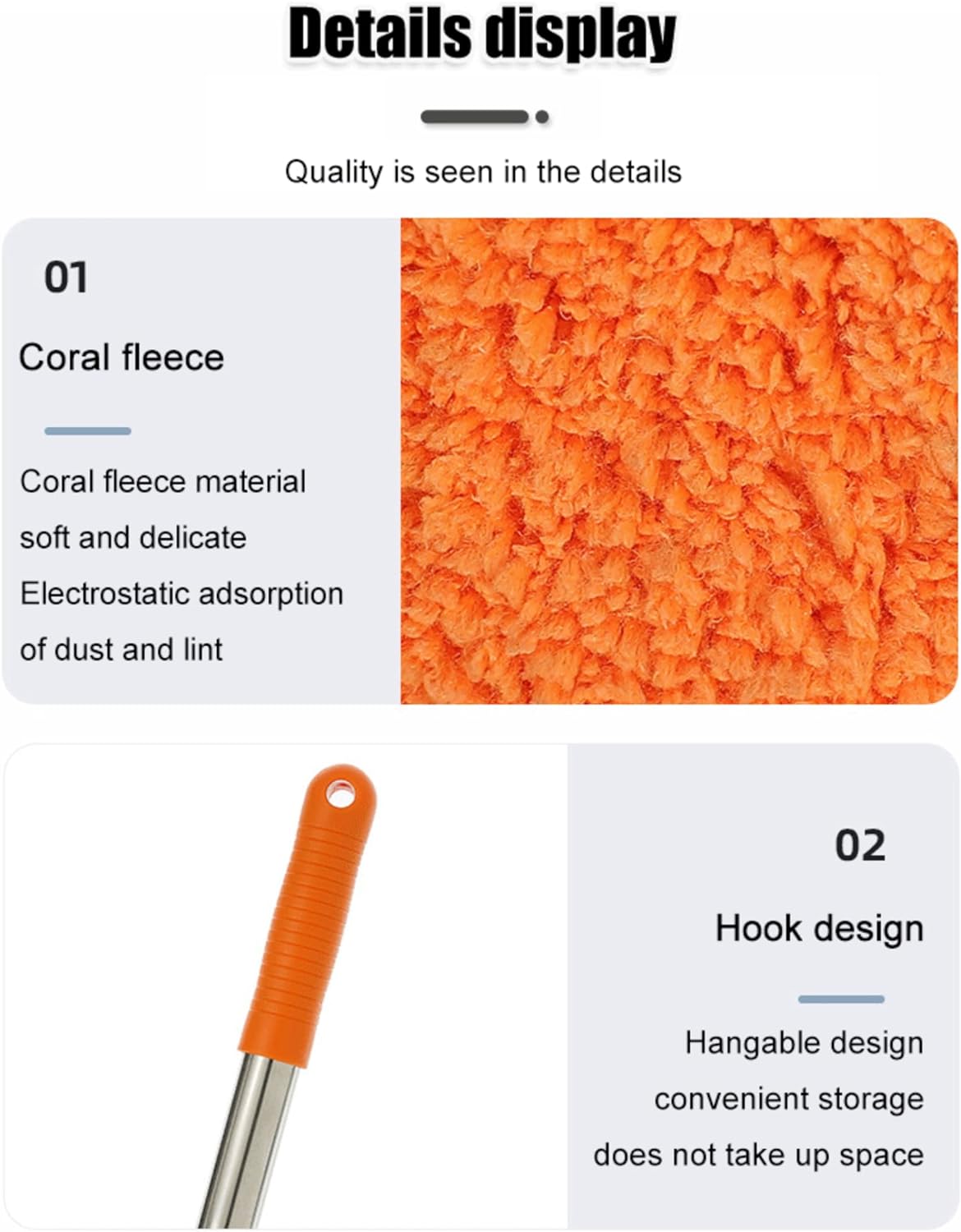Built with a stainless steel handle and high-quality PP materials, this mop is lightweight yet sturdy. The 4-section extendable handle allows easy assembly and compact storage. With a lightweight design of only 0.8 kg, the mop glides smoothly while reducing hand and arm fatigue during extended cleaning sessions.