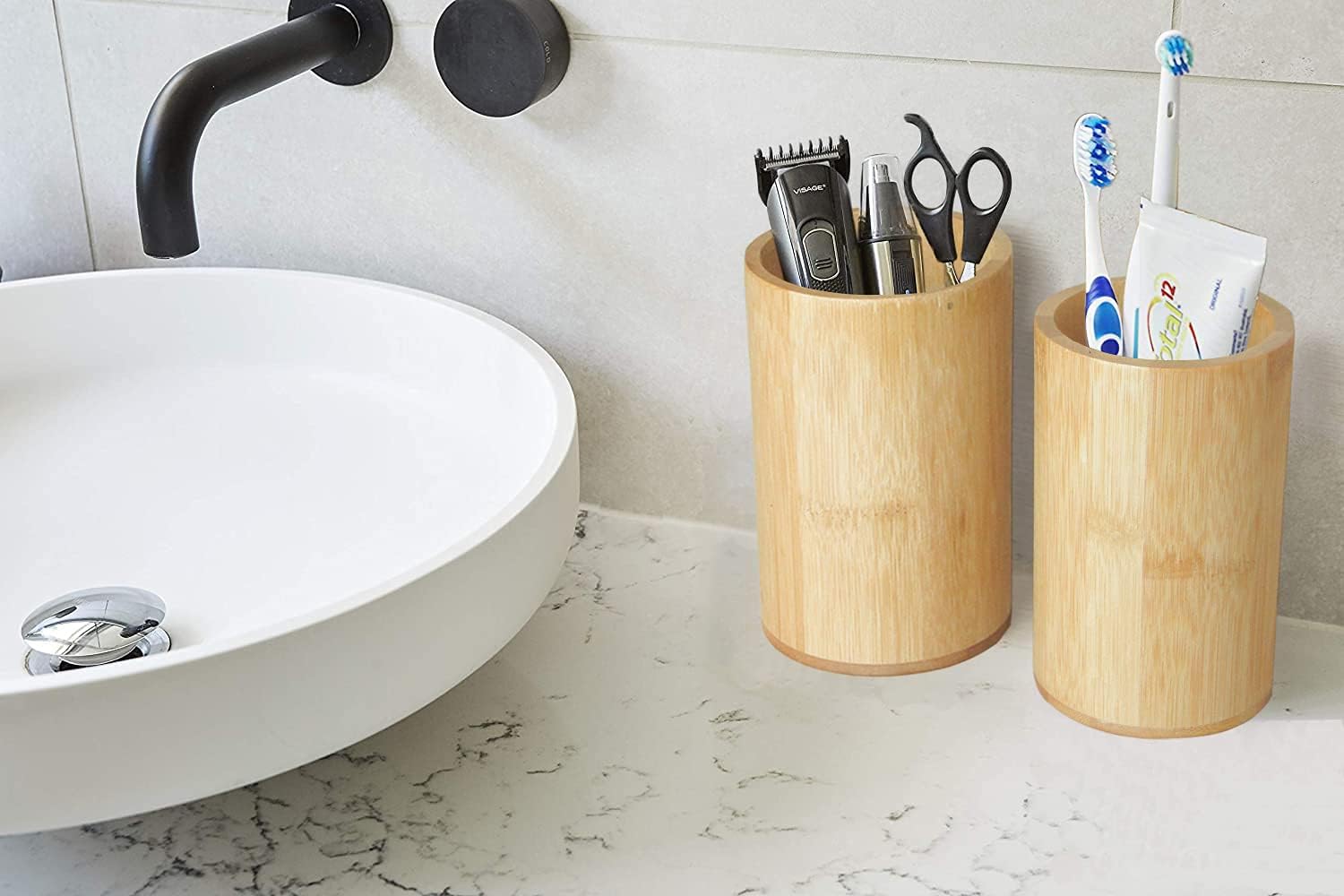 This bamboo caddy is not limited to kitchen utensils. Use it as a makeup brush holder, desk organizer, or craft tool container to declutter your home or office. Its compact and sturdy design fits seamlessly on countertops, desks, vanities, or pantry shelves, offering both functionality and style.