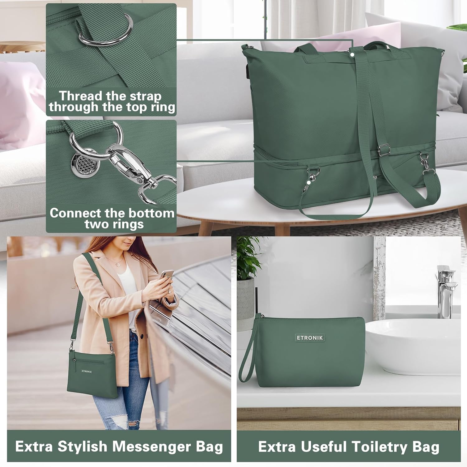 If you’re looking for a stylish yet functional women’s weekender bag, the ETRONIK Expandable Travel Duffel offers the perfect combination of capacity, comfort, and convenience. Designed with modern travelers in mind, this 3-in-1 set includes a crossbody bag, toiletry pouch, and a spacious expandable duffel—ensuring you stay organized wherever your adventures take you.