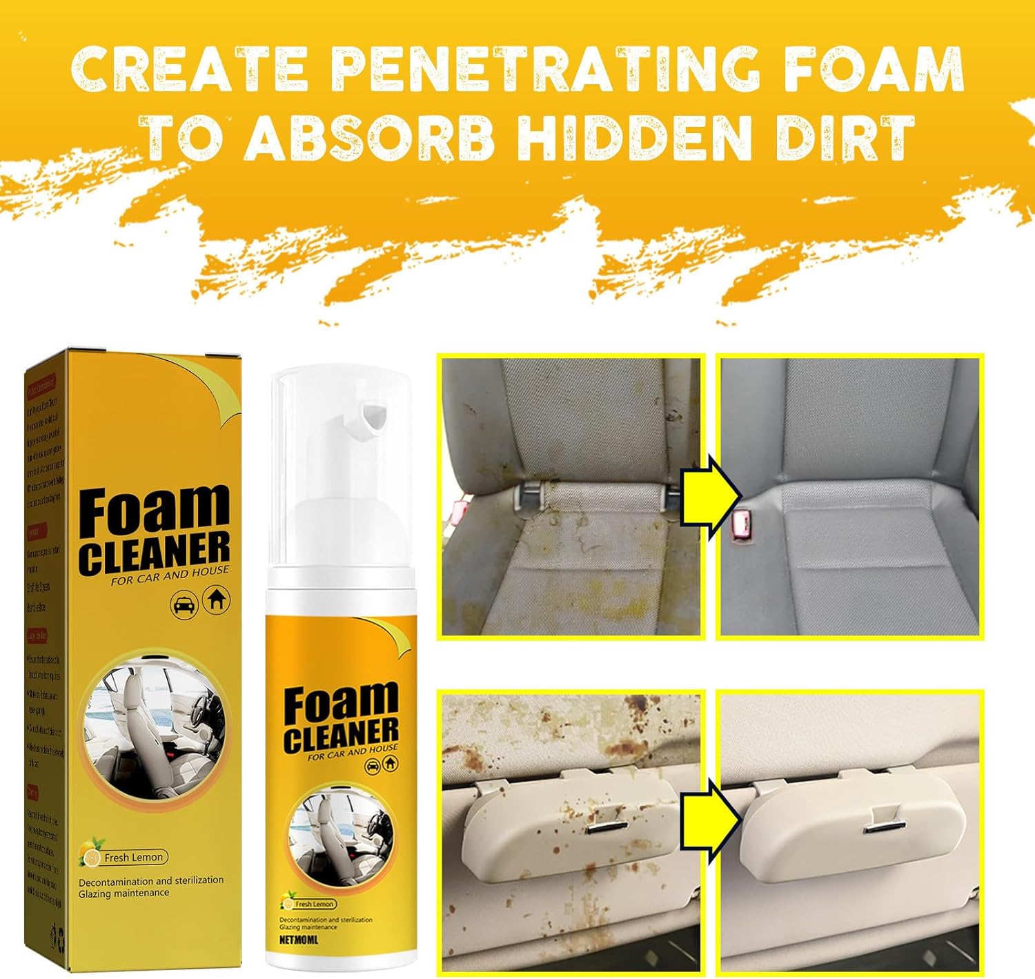 • Multi-Surface Use: Ideal for car interiors, ceilings, dashboards, fabric seats, leather, home furniture, and kitchen surfaces.