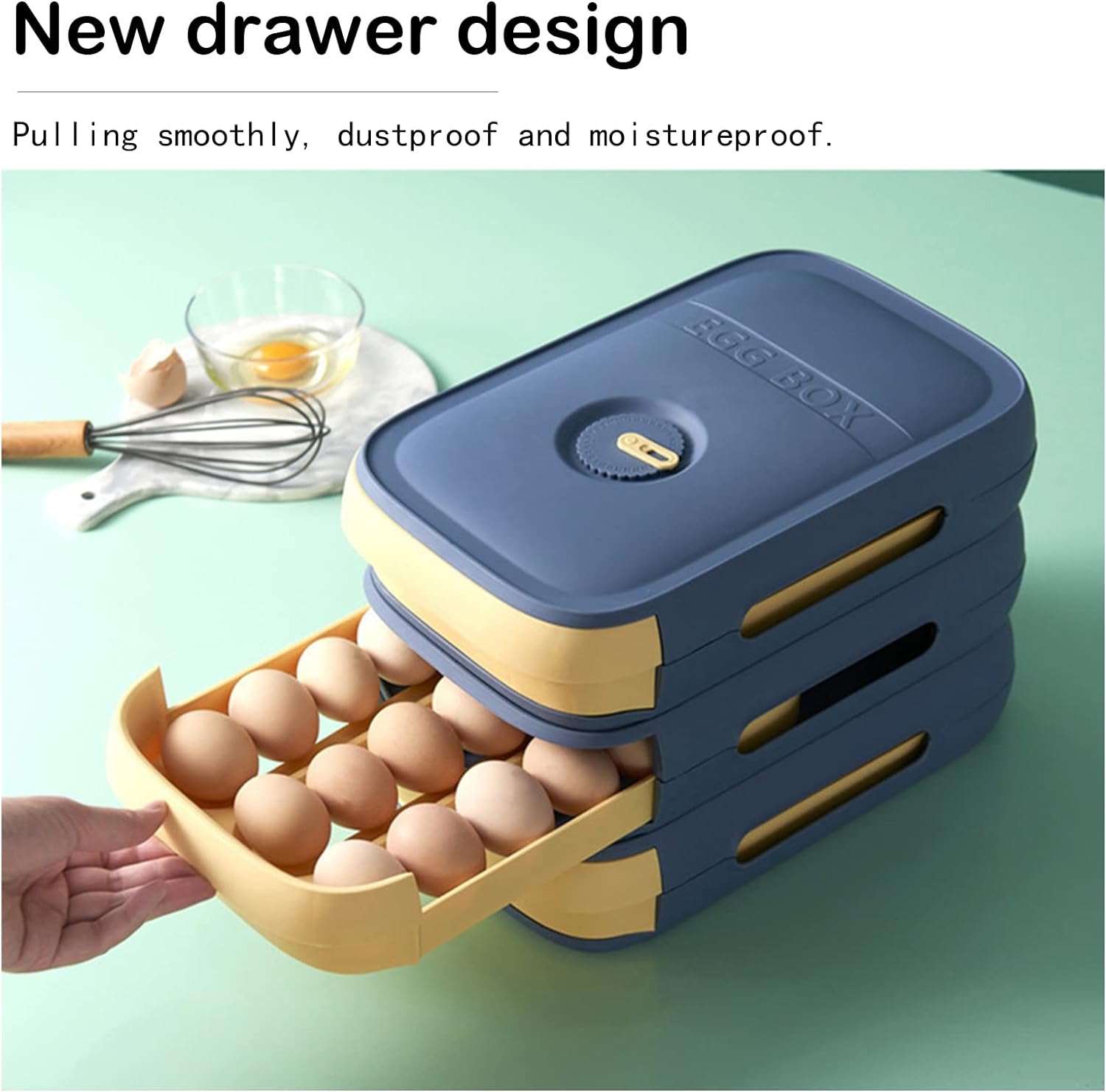 • 🥚AUTO ROLL–This egg container for refrigerator uses the latest drawer design,which is convenient for you to take out and place eggs; in addition,the drawer has a 7° slope,and the eggs will automatically roll down when the drawer is opened.