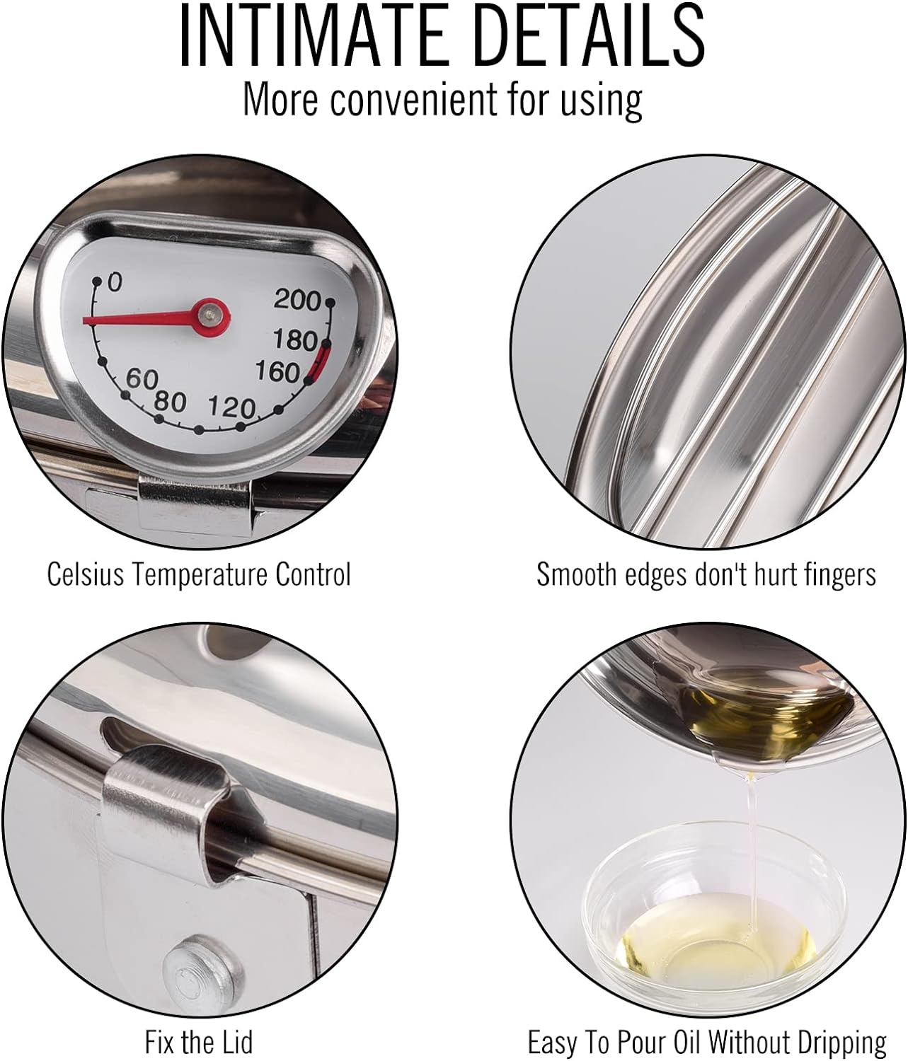 • Deep Fryer Pot with Bypass Spout – The innovative spout design allows easy draining of used oil. Reuse oil safely while keeping your kitchen clean.