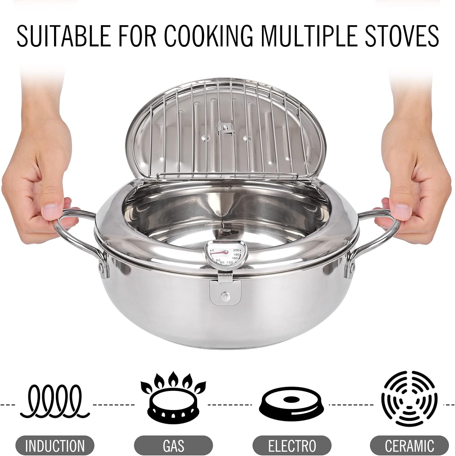 Whether you’re preparing a quick snack or cooking for a family gathering, this Japanese tempura fryer works flawlessly with any stovetop, including gas, electric, and induction. Its durable 304 stainless steel construction ensures even heat distribution, preventing hot spots and maintaining perfect frying results.